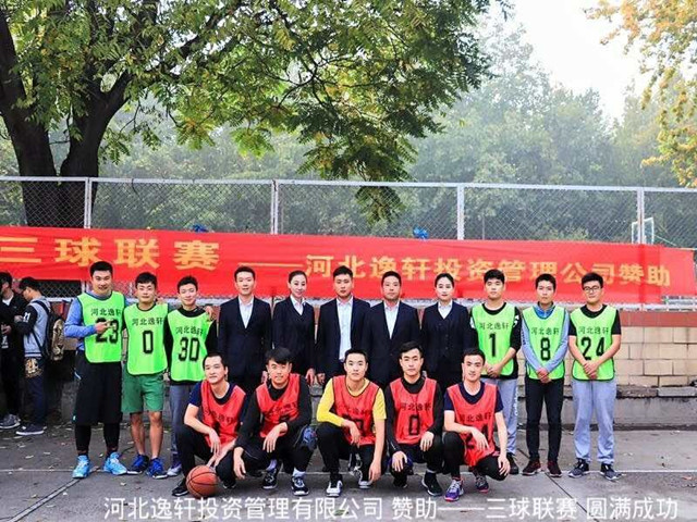 本次三球联赛是由河北逸轩投资管理有限公司全程独家赞助支持!参加本次篮球赛的队员全部由本校研究生组成,比赛开始前举行了隆重的开幕仪式,校领导致开幕词并集体趣味投篮为运动员加油鼓劲!运动员们身着印有“逸轩投资”字样的篮球服,在中场集体合影后比赛正式开始!
