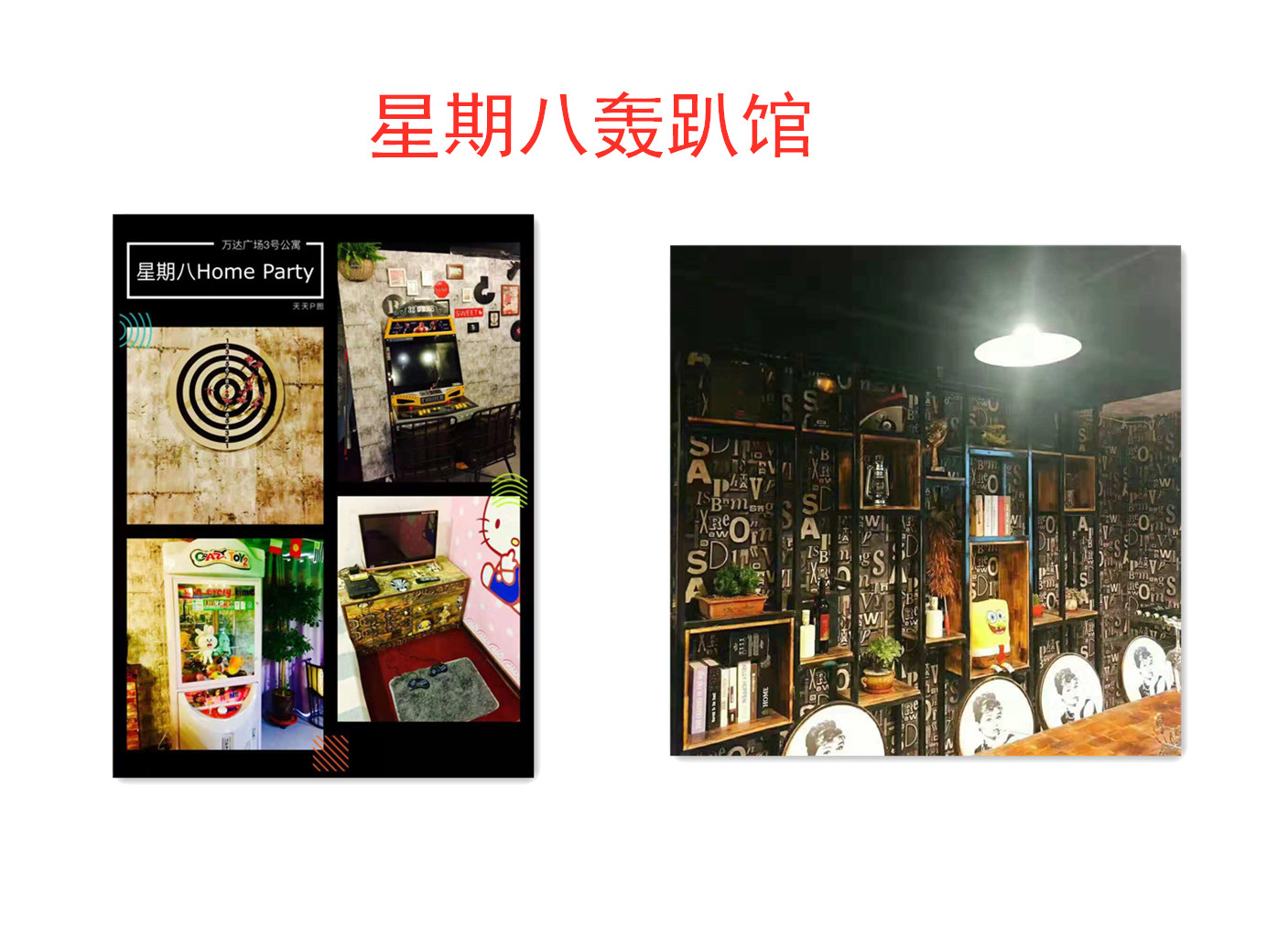 “星期八轰趴馆”地处商业繁华地段,建华南大街与槐岭路交叉口西南角,万达广场三号公寓九楼,总场地面积300平米。有着最优越和方便的地理环境;交通方便,停车便利,适应于各种聚会,中小型公司会议,接待客户一体,宴请各种层次领导。轰趴馆内部设有最全面的硬软件设备、潮流主张!集餐饮、文化、娱乐等多种功能于一体,给足面子,彰显档次。